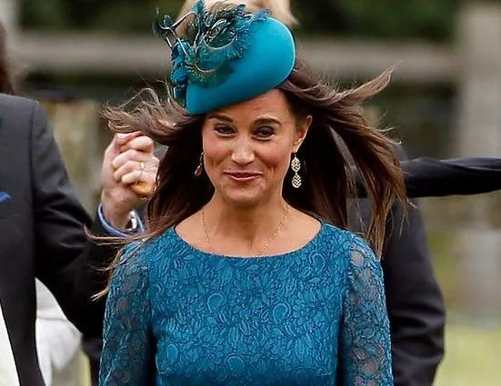 Pippa wore a teal blue lace dress by Tabitha Webb to the wedding, which was also attended by William and Harry.